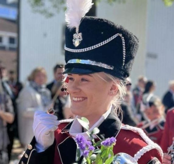Hun har selv gått i Haukerød skolekorps der hun etter hvert også ble instruktør på klarinett og saksofon.